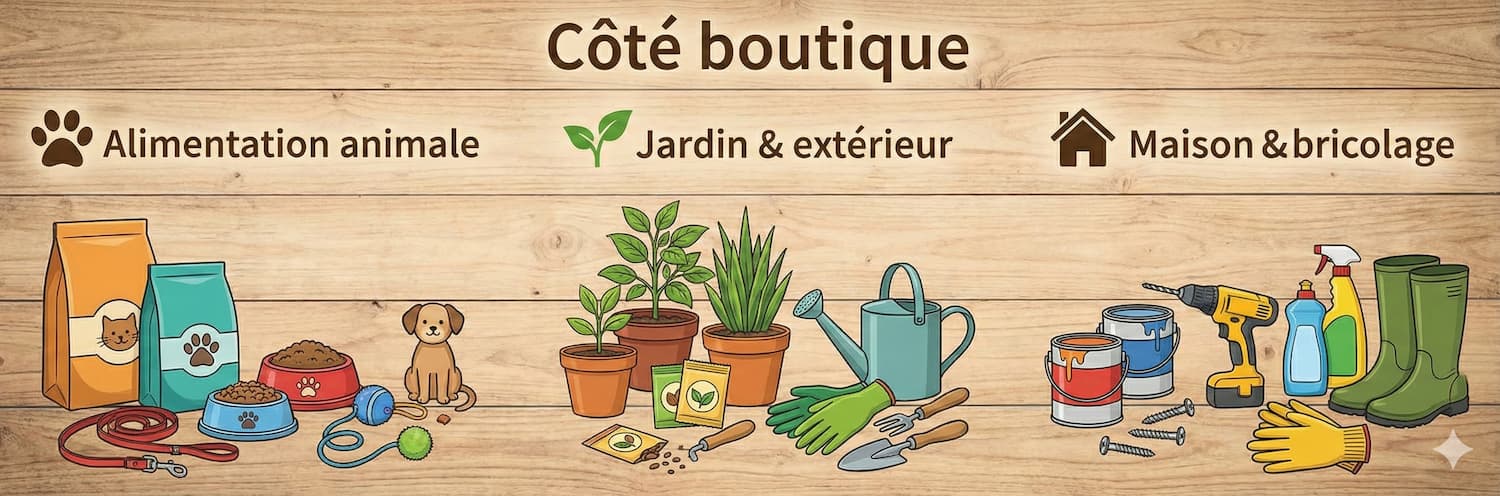 Entre matériel professionnel, libre-service, alimentation animale et équipement du quotidien,
