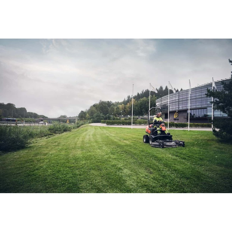 Le Husqvarna P520DX est un Rider professionnel à moteur Diesel, conçu pour offrir une productivité inégalée sur de vastes surfaces. Alliant robustesse, agilité et une visibilité parfaite grâce à son carter de coupe frontal, il est l'outil privilégié des collectivités, campings et paysagistes de Dordogne et Gironde.